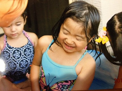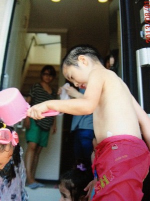 7月の暑い日お友達のプールで遊びました