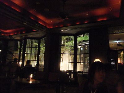 barの客席はかなりは入れそう 中庭のライトアップと蒸気、なかに浮かぶ緑鮮やかな竹林を眺めながら ペア達は何を語るの