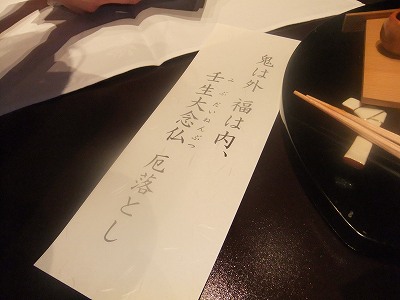 続いて赤ワイン♪ 節分の厄落としとして 文字を唱えながら素焼きのふたを木ずちで割り 厄払い完了