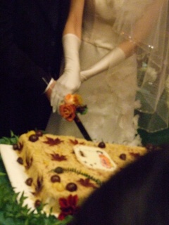 | ウェディングドレス とても お似合いです。ケーキ入刀 |