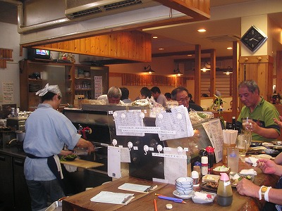 お店はお座敷とテーブル席とカウンター席 いつも店内はお客様でいっぱい。