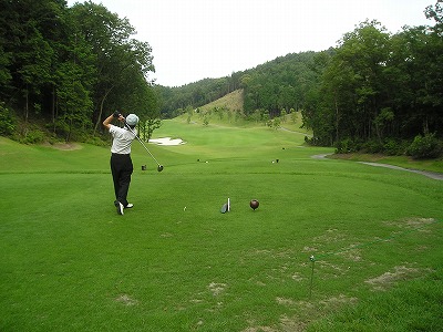 練習グリーンもいいわ・・池の左が9番 右が18番 あんな事になるとは まだ何も